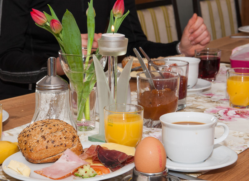 Nach einer ausgeruhten Nacht servieren wir Ihnen persönlich ein ausgiebiges Frühstück, individuell am Tisch oder lieber vom Buffett.